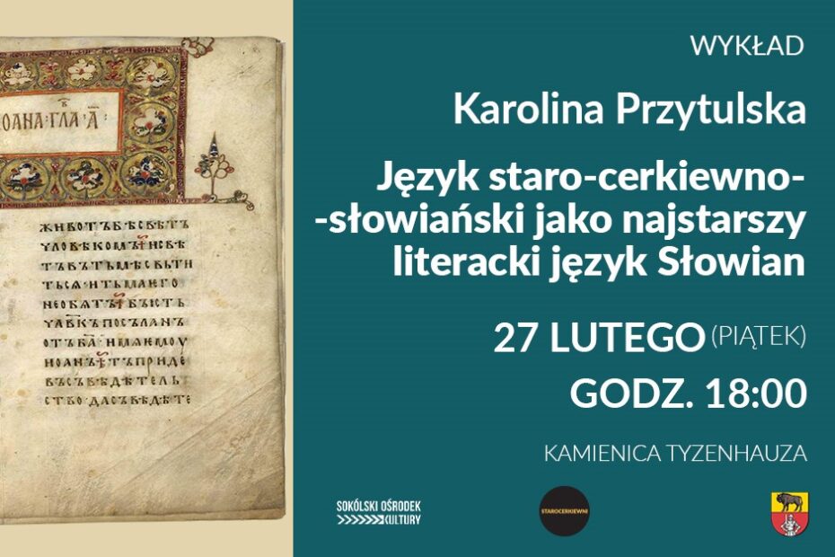 Sokólski Ośrodek Kultury zaprasza na wykład na temat: Język Staro-cerkiewno-słowiański jako najstarszy literacki język Słowian, który wygłosi Karolina Przytulska. 27 lutego (piątek), 18:00, sala wystawowa… Czytaj dalej »JĘZYK STARO-CERKIEWNO-SŁOWIAŃSKI JAKO NAJSTARSZY LITERACKI JĘZYK SŁOWIAN – wykład w SOK-u